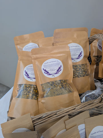 Drift off to a peaceful slumber with our Lavender and Chamomile Tea. Infused with the calming properties of these two natural botanicals, this soothing blend is the perfect companion to your bedtime routine. Chamomile has long been used to promote relaxation and ease symptoms of insomnia, while lavender's floral aroma has a proven track record of reducing anxiety and stress. When combined, these powerful ingredients work in harmony to quiet your mind and prepare your body for a restful night's sleep. Indulge in the comforting flavors of our Lavender and Chamomile tea and experience the difference quality, natural ingredients can make. Reclaim your sleep and wake up feeling refreshed – order your tea today.